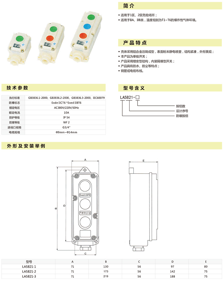 LA5821系列防爆控制按钮